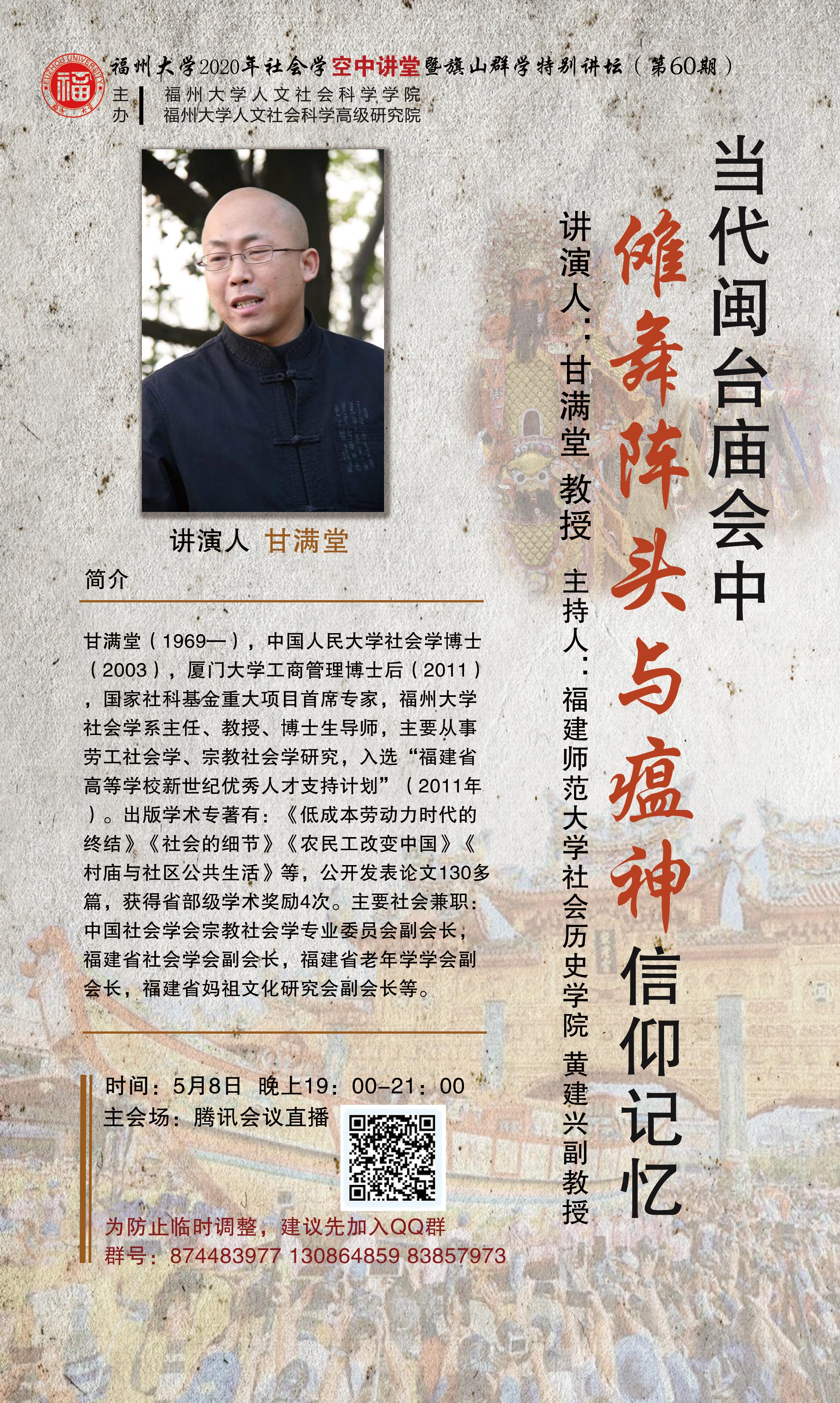 演讲人简介:甘满堂(1969—),中国人民大学社会学博士(2003),厦门大学工商管理博士后(2011),国家社科基金重大项目首席专家,beat365中文官方网站社会学系主任、教授、博士生导师,主要从事劳工社会学、宗教社会学研究,入选“福建省高等学校新世纪优秀人才支持计划”(2011年)。出版学术专著有:《低成本劳动力时代的终结》《社会的细节》《农民工改变中国》《村庙与社区公共生活》等,公开发表论文130多篇,获得省部级学术奖励4次。