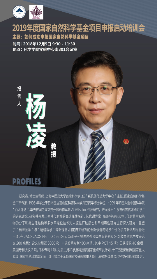 杨凌,研究员,博士生导师,上海中医药大学首席科学家,任“系统药代动力学中心”主任。1996年毕业于日本国立富山医科药科大学并获药学博士学位;1999年归国入选中国科学院“百人计划”。率先在国内建立并开展药物早期ADME/Tox性质研究;进而提出“系统药物代谢动力学”的研究理念。研究并开发出多种代谢酶的高选择性探针,从代谢异常、细胞特征标志物、代谢异常和药物的分子和微生理结构等多水平定位技术对人源性肝脏损伤和早期毒性研究进行深入研究;重塑了“精准医学“与“精确医学”等新理念。目前自主研发的全新候选药物及个性化诊疗新试剂品种近十项。在JACS、ACS Nano、ChemSci、Cell子刊等国内外顶级国际期刊和SCI收录杂志中发表论文200余篇;论文总引近6000次,申请发明专利100余项,其中PCT 15项;已获授权40余项,美国专利授权2项,日本专利1项。先后主持和承担科技部国家重点研发计划、十二五新药创制国家重大专项、国家自然科学基金面上项目等二十余项国家及省部级重大项目,获得各项基金和经费已逾5000万。